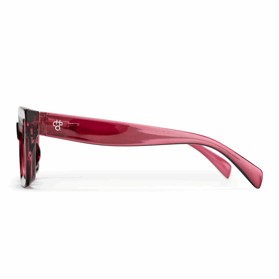 Anna. A power frame that will rule them all. Named after a power woman that also rules them all. Comes with a brown lens combined with a burgundy frame made from 100% recycled plastic.