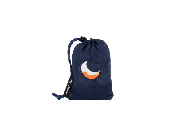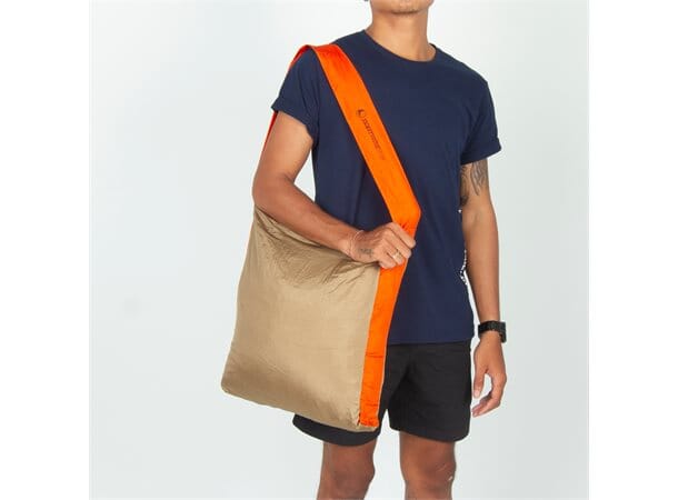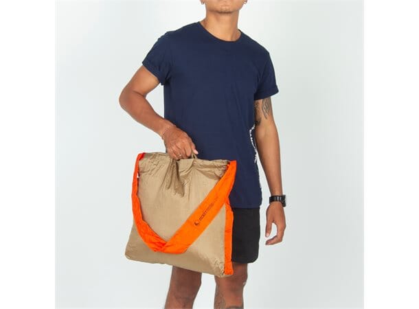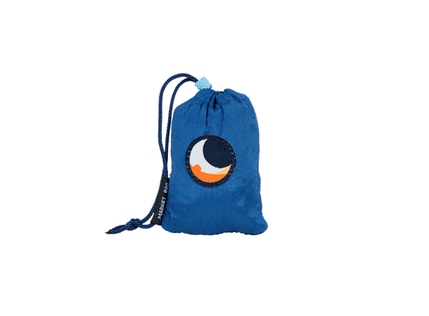 Eco Market Bag er laget av restmaterialene fra hengekøyeproduksjonen til Ticket To The Moon. Den veier nesten ingenting og får enkelt plass i lommen, sekken, vesken eller under setet på sykkelen. En bred og komfortabel skulderrem gjør handlenettet enkelt å frakte når du sykler.